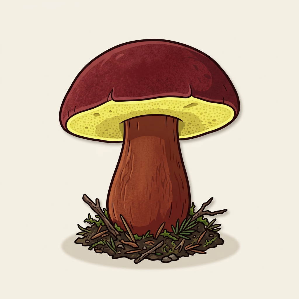 Dark reddish-brown velvety cap with yellow pores and a sticky (when wet) stem. Common under hemlock in the Pacific Northwest. Rich, meaty flavor.