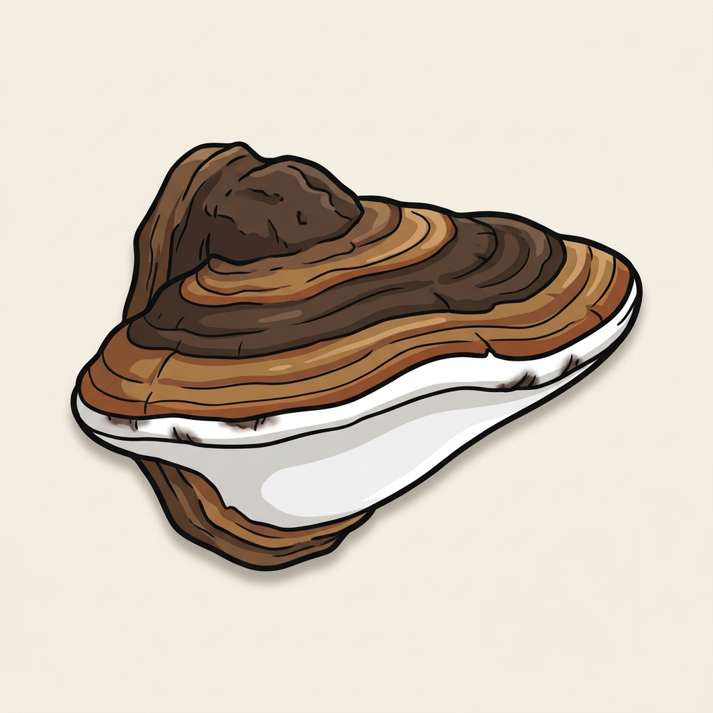 Woody perennial shelf fungus on hardwood. White underside bruises instantly brown when scratched — artists etch portraits and landscapes on the living underside and dry the conk to preserve. Also used medicinally as tea.
