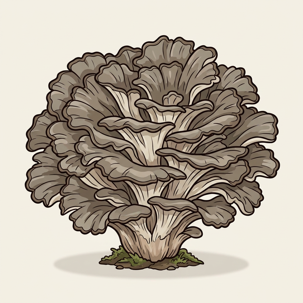 Berkeley's polypore has LARGER, LIGHTER, more leathery leaves and can be TOUGH to inedible. Hen of the woods has SMALLER, DARKER gray-brown fronds in a tighter rosette and stays tender.