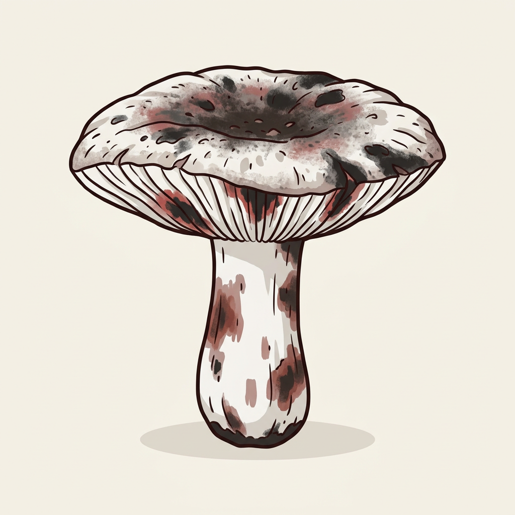 Large white-to-gray Russula that stains REDDISH then BLACK when bruised or aged. Firm flesh; mild flavor. Easy to identify because of the color change.