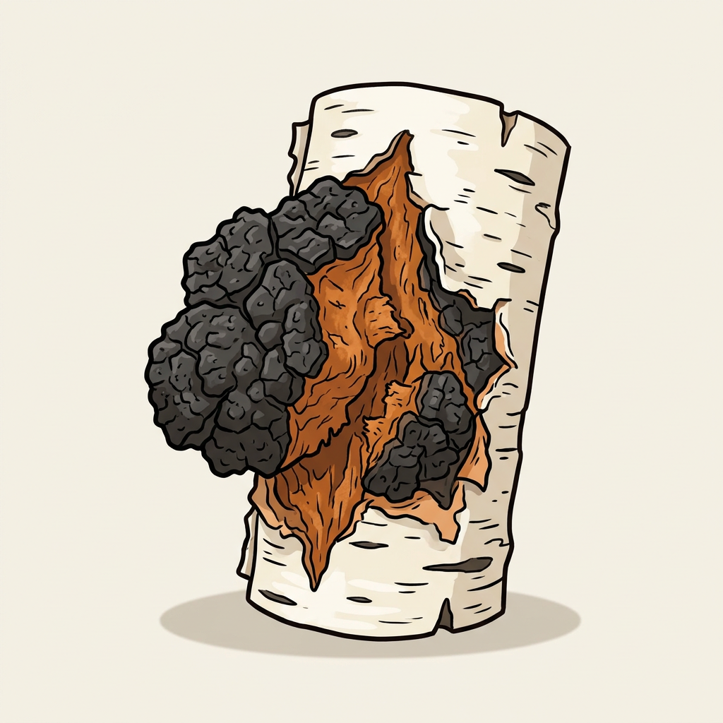 "Not a fruiting body — a sterile canker. Simmered for hours into a dark tea. Cold northern woods only."