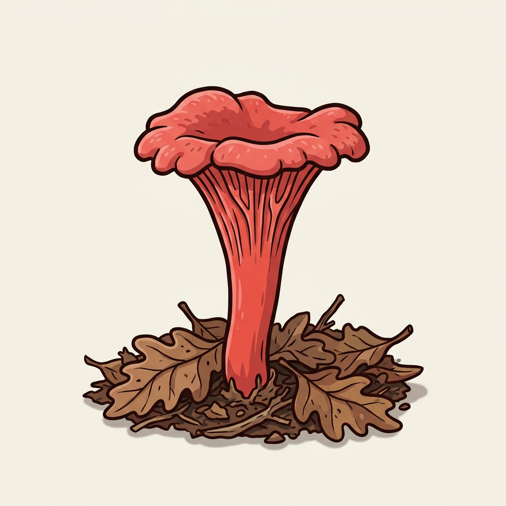 Small bright-red to cinnabar-orange chanterelle. Intense color makes them easy to spot on forest floor. Same mild apricot flavor as golden chanterelles.