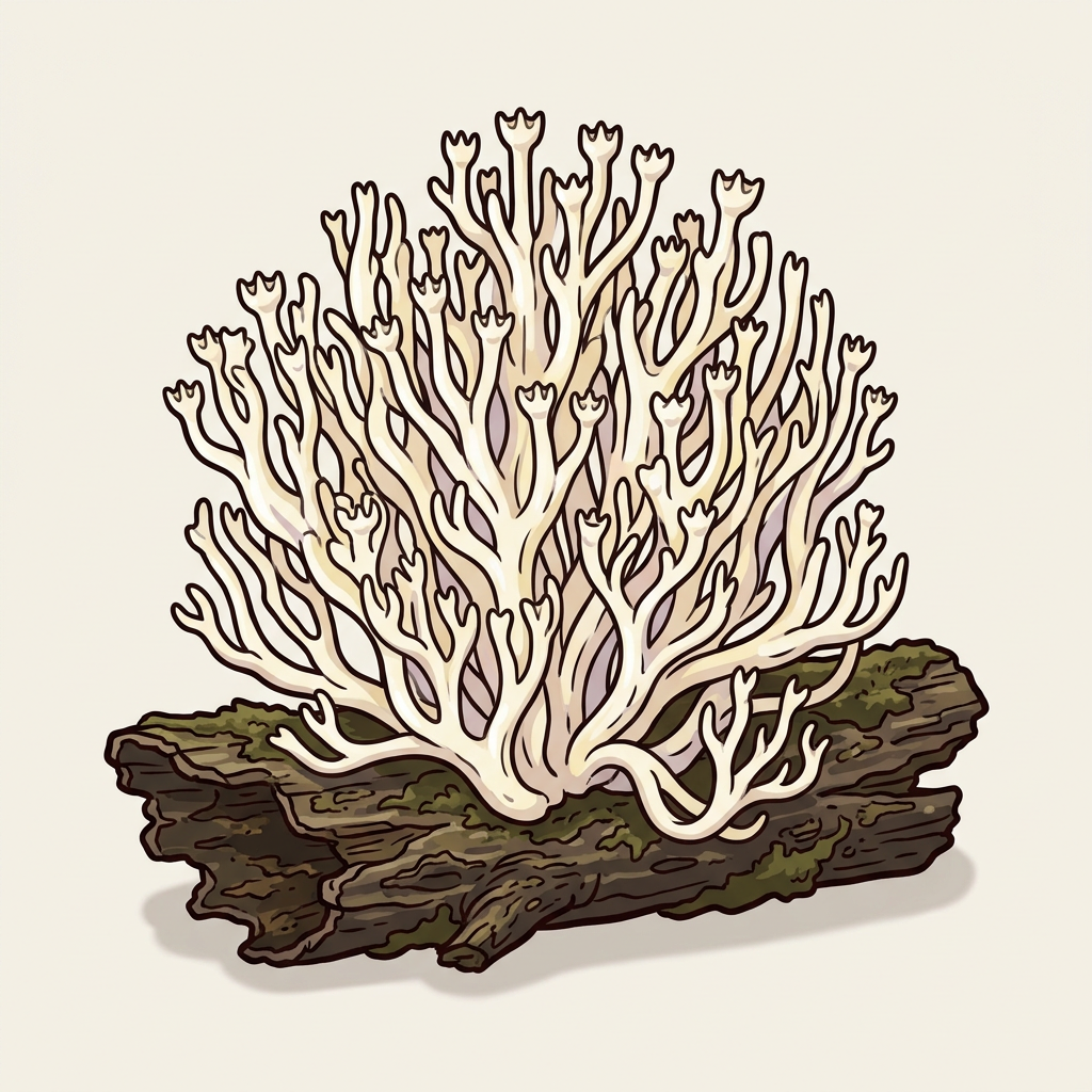 "Little crown-tipped branches. Unlike Ramaria corals, this one plays nice. Mild flavor, crunchy texture."
