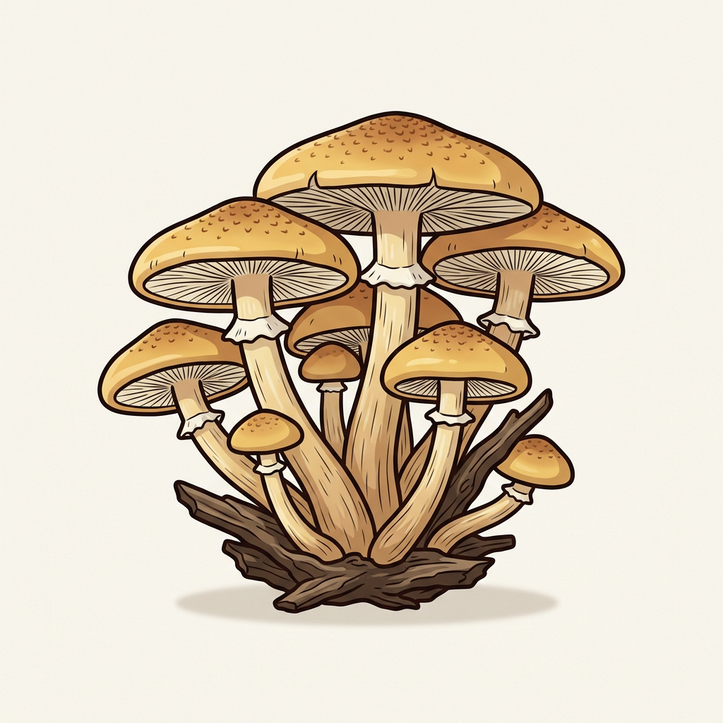 Honey mushrooms have WHITE SPORE PRINTS, cream gills, and grow in big clusters from wood with a distinctive ring. Deadly galerinas have RUST-BROWN SPORE PRINTS, brown gills, and grow singly or in small groups ON THE SAME WOOD. Always take a spore print before eating honeys.