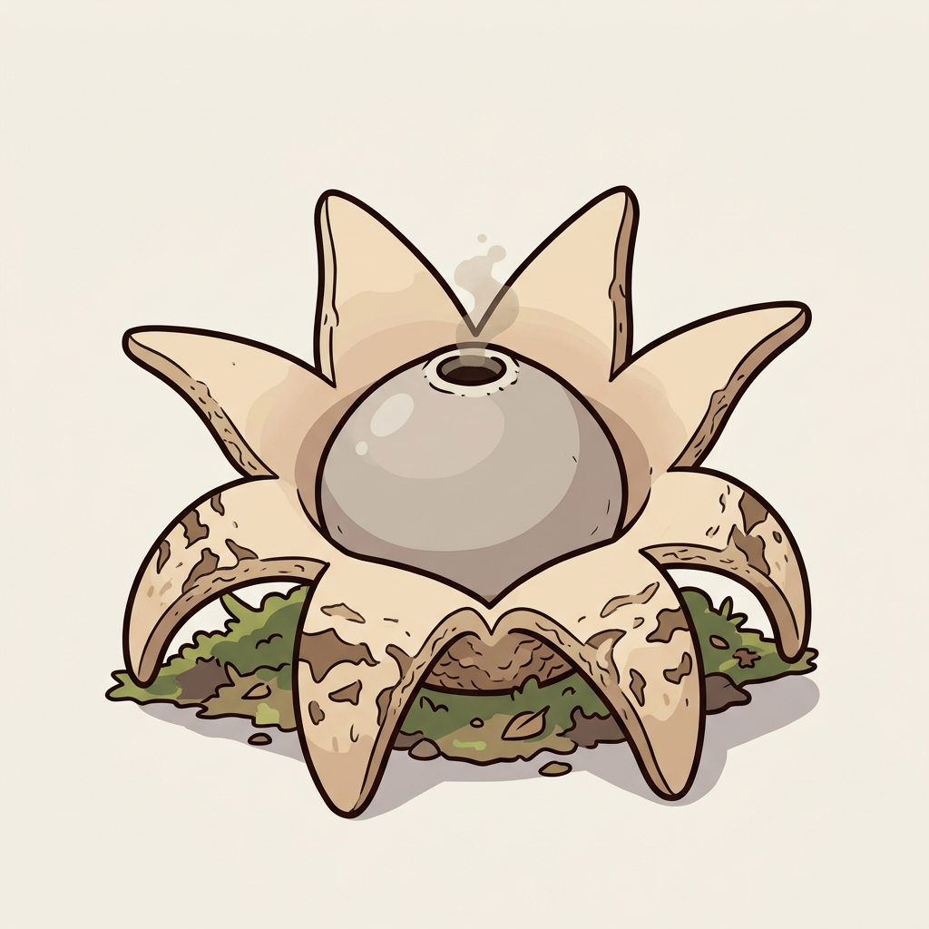 "A puffball that splits open into a star. Not for eating — for finding. Children's favorite."