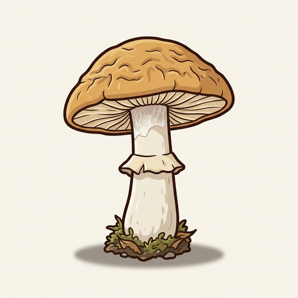 "A Cortinarius you can eat — most you shouldn't. Tan cap, veil ring on stem, Nordic staple. Verify carefully."