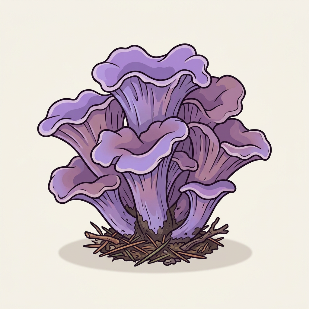 "Lavender-violet horns clustered on the forest floor. Decent eating, stunning to find."