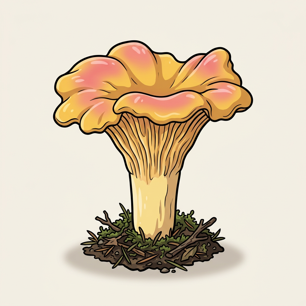 "PNW's pink-tinged chanterelle — picks up a rosy blush on the cap. A softer cousin to the Pacific Golden."