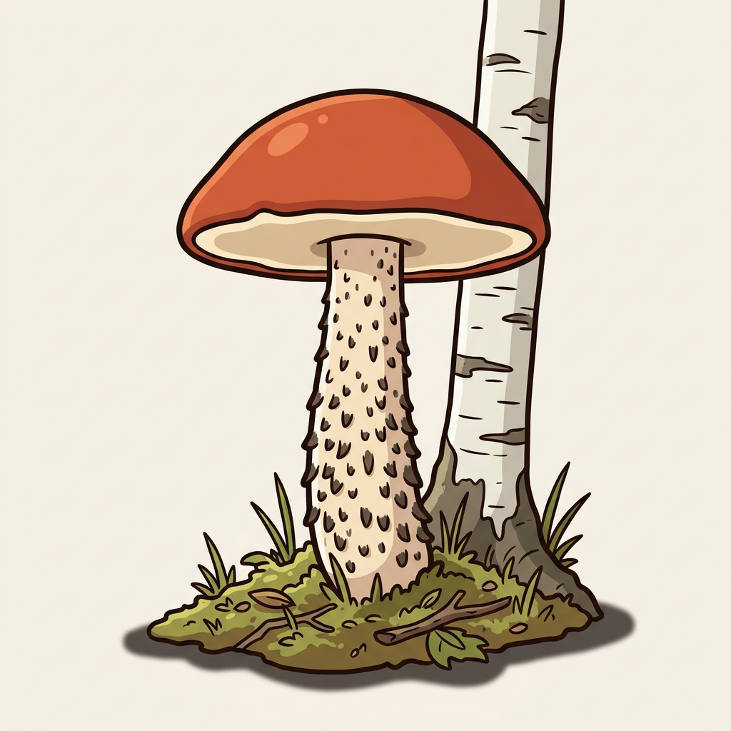 Bright red-orange cap with dark scabers on a white stem. Mycorrhizal with aspen, oak, birch, and pine depending on region. Flesh bruises wine-red, then gray-black.
