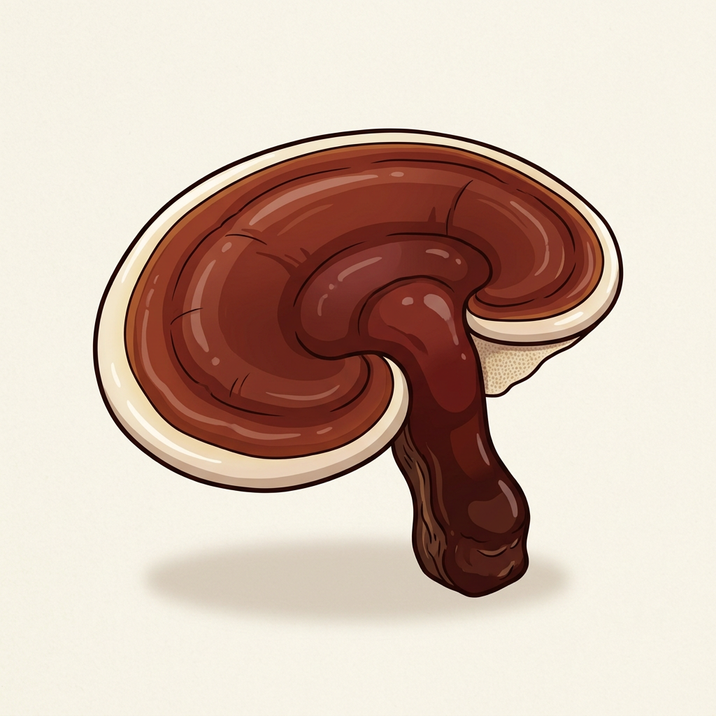 Lacquered reddish-brown shelf fungus on hardwood (Ganoderma sessile/lucidum group) or hemlock (G. tsugae in the East). Too tough to eat — sliced and simmered for tea. Traditional Chinese medicine "mushroom of immortality"; triterpenes and polysaccharides under active clinical study.