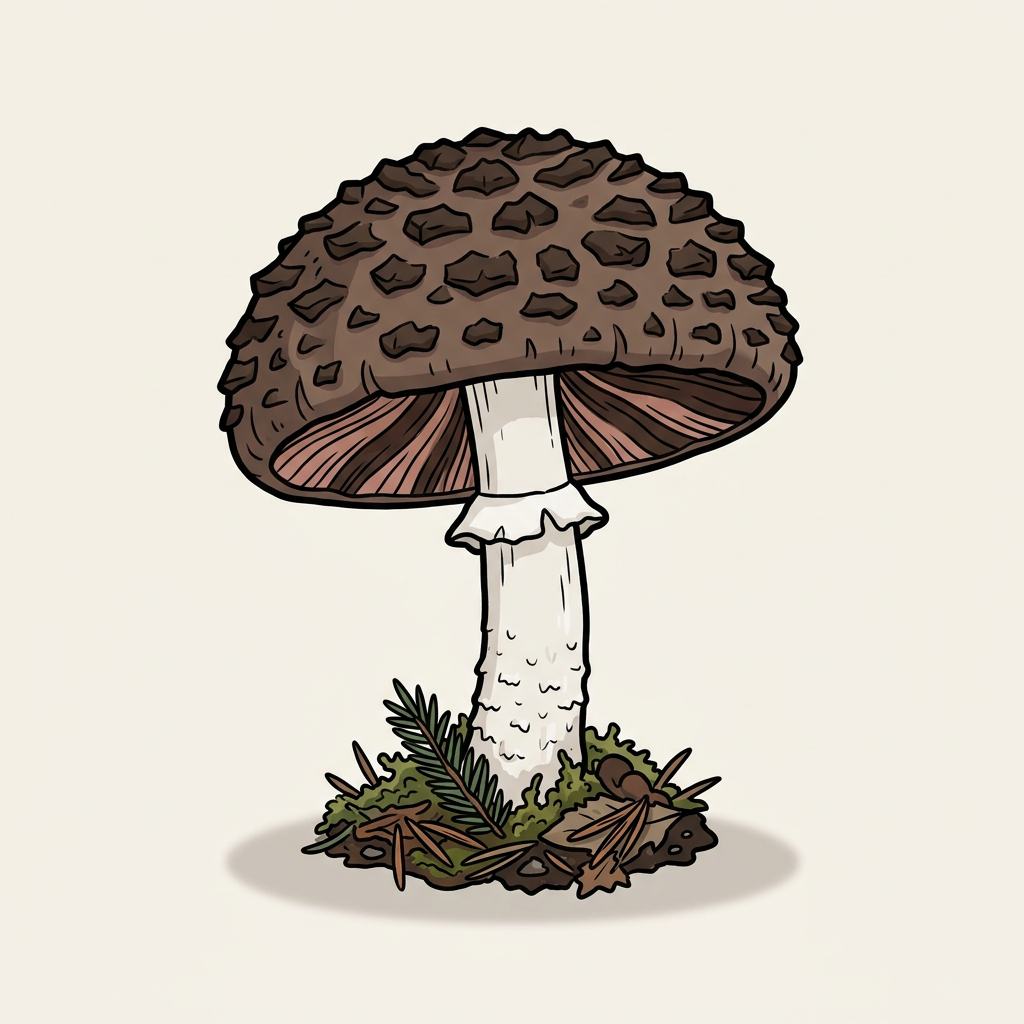 "Brown scaly cap, bleeds red when cut. Best pinpoint-tested with a small cooked portion first."