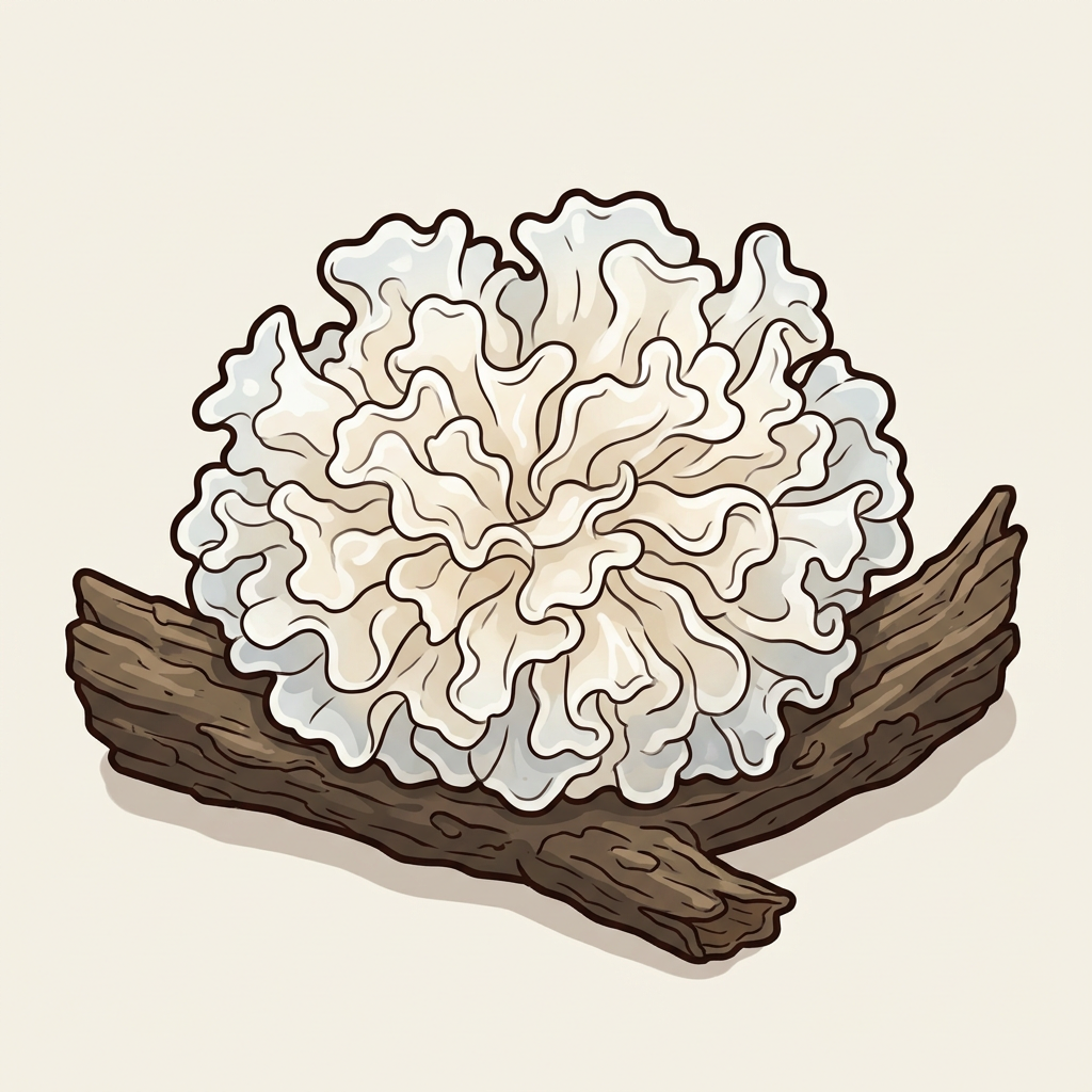 Translucent white gelatinous rosette on dead hardwood. Used in Chinese sweet soups and desserts for its texture and skin-hydrating properties. Nearly flavorless; picks up the flavor of sugar syrup.
