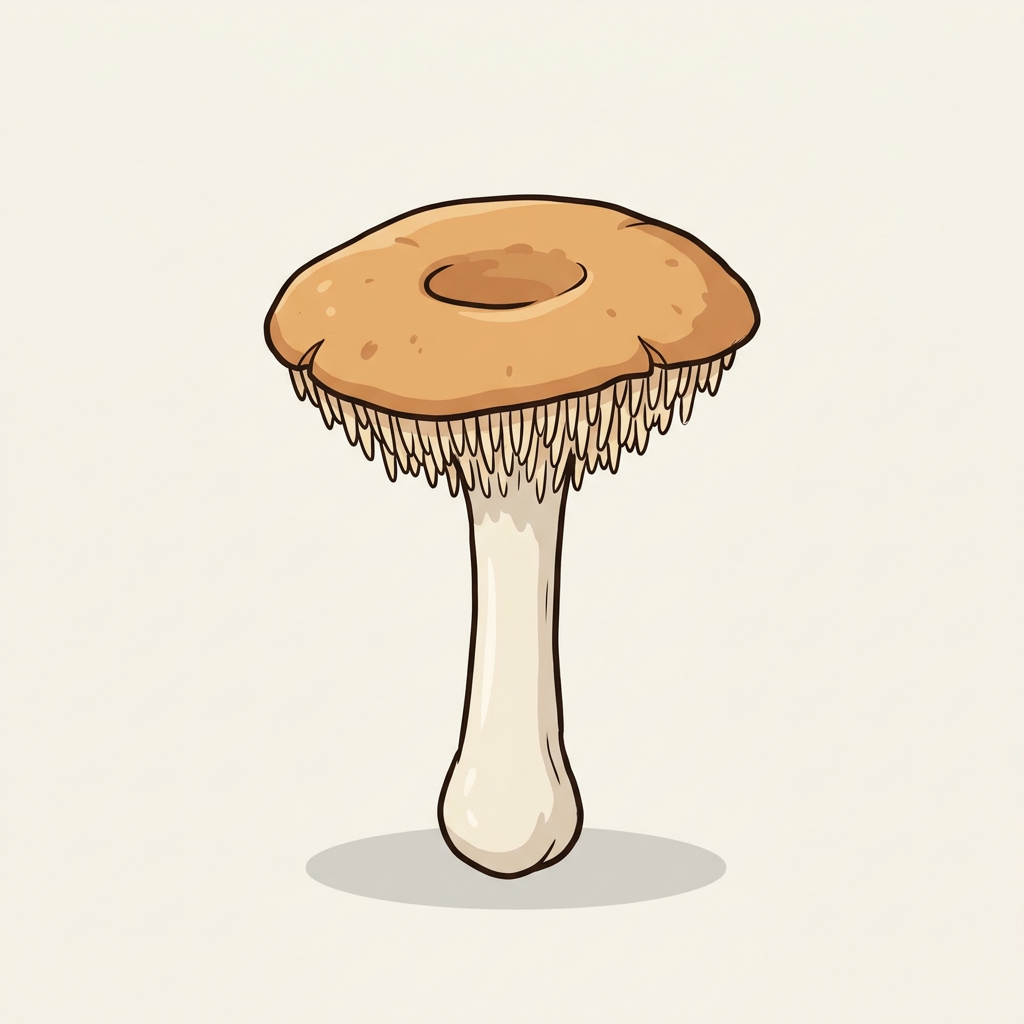 Smaller cousin of the hedgehog mushroom with a centrally-dimpled cap, same soft toothed underside, same safe edibility profile. Common in eastern hardwood forests in fall.