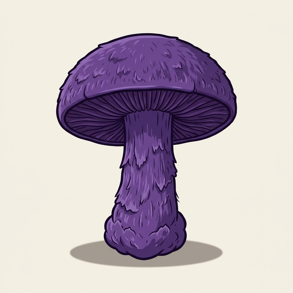 Deep violet-purple Cortinarius with a dry scaly cap and purple gills. One of the most striking purple mushrooms in the forest. Like all Cortinarius except gypsy mushroom, treat as toxic — genus contains deadly orellanine species.